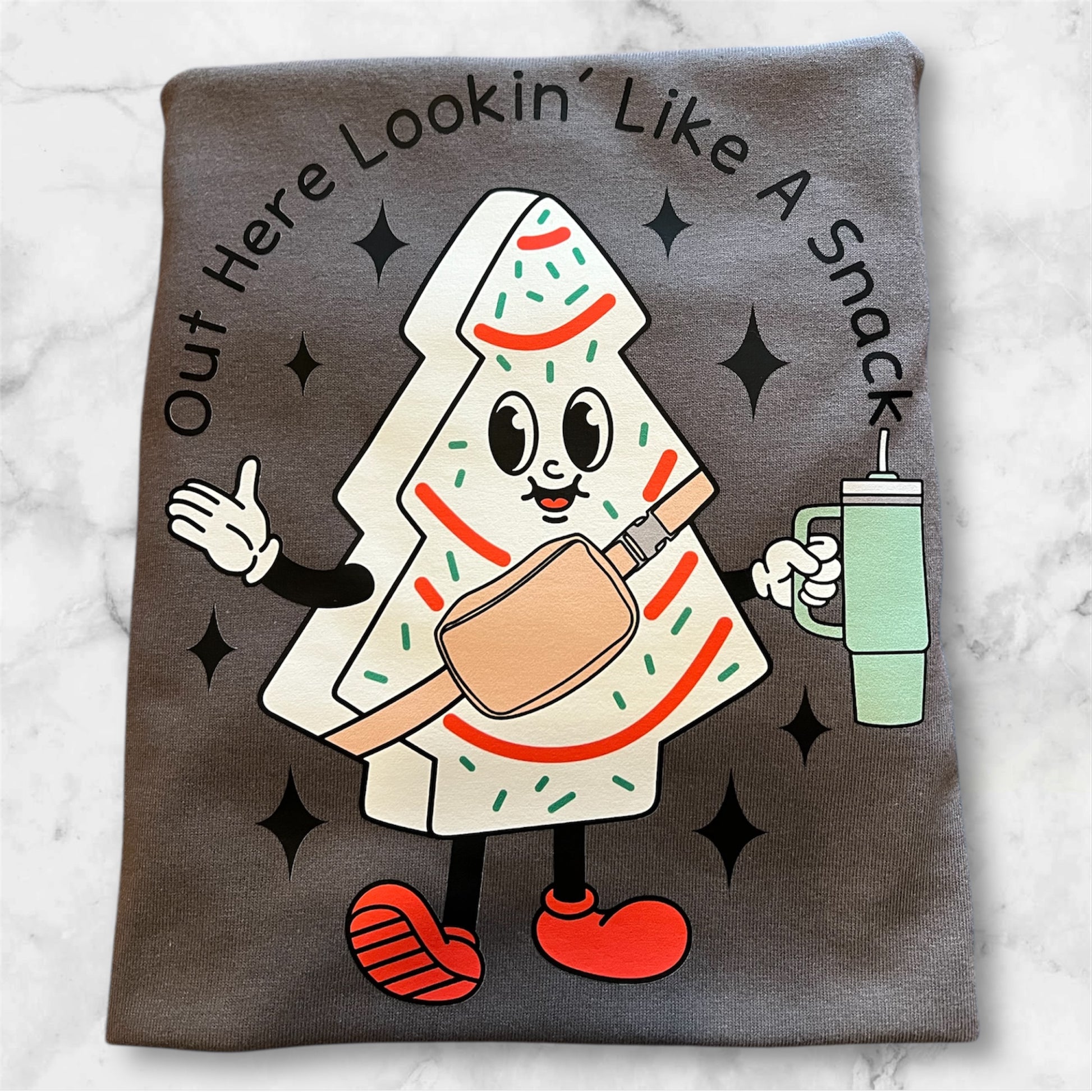 Serving sweet and sassy vibes! This “Out Here Looking Like a Snack” shirt or sweatshirt featuring a classic snack cake and Stanley cup design is perfect for anyone who knows they’re the treat, not the side dish. Whether you’re sipping your favorite drink or living your best snack life, this cozy and funny tee or sweatshirt is a must-have!